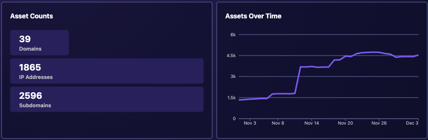 The Asset Counts widget offers a clear breakdown of your inventory by type while the Assets Over Time widget visualizes how your asset portfolio has evolved, making it easy to track growth and changes in your infrastructure.