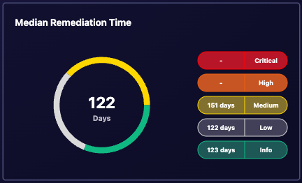 To help you gauge efficiency, the Average Remediation Time widget displays the mean time taken to address vulnerabilities of different severity levels.